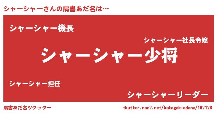 | ヘコむあだ名 | 『シャっぺ』『シャっふぃ~』 |