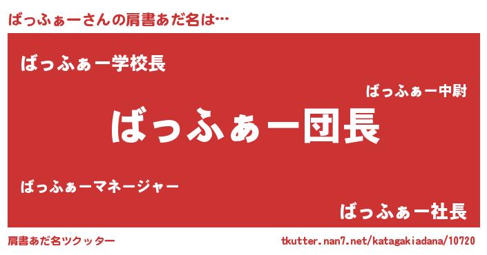 | 意味不明あだ名 | 『とにかく怪しいばっふぁー』 |