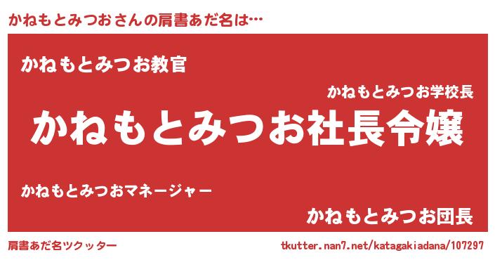 | ヒーロー風カッコイイあだ名 | 『スーパーカネモトミツオ』 |