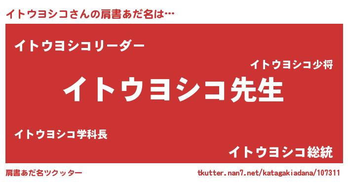 | 意味不明あだ名 | 『永久保存イトウヨシコ』 |