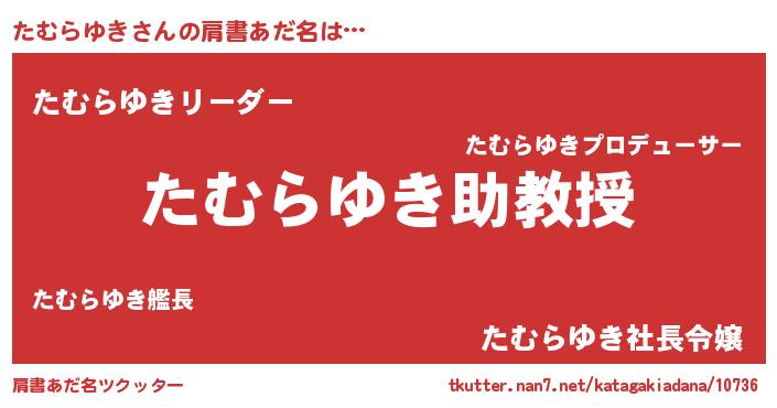 | 男性向けラノベタイトル風あだ名 | 『おまえをオタクにしてやるから、俺をたむらゆきにしてくれ! 』 |