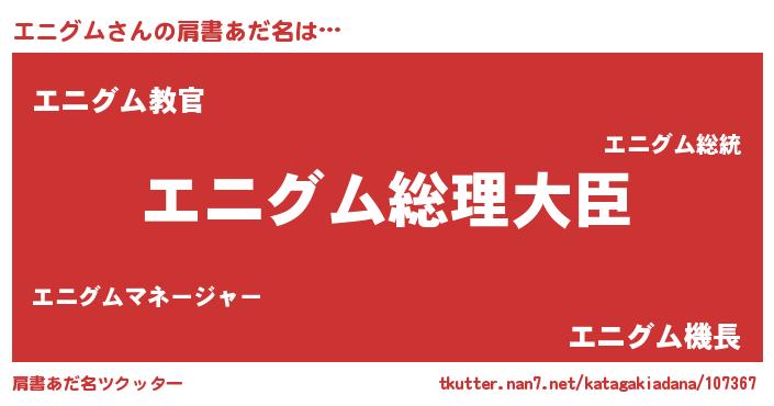 | 意味不明あだ名 | 『エニグムフォーエバー』『自称エニグム』 |