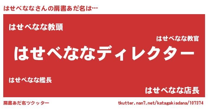 | 意味不明あだ名 | 『永久保存はせべなな』 |