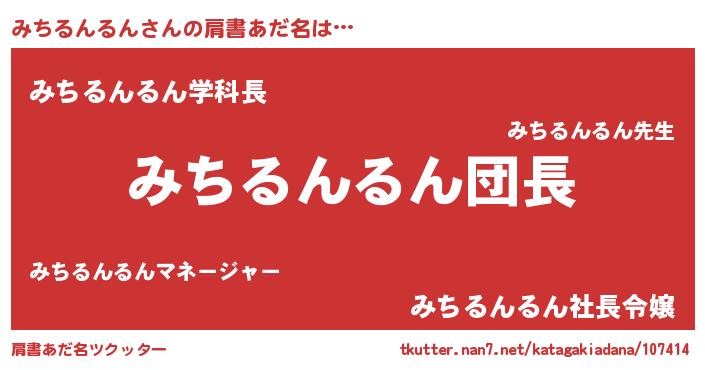 | 女子向けラノベタイトル風あだ名 | 『みちるんるんの卵を拾いまして』 |