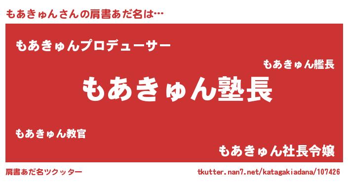 | 女子向けラノベタイトル風あだ名 | 『もあきゅんは平凡を望む』 |