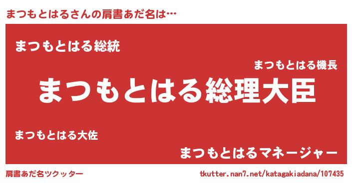 | 男性向けラノベタイトル風あだ名 | 『やはりまつもとはるの青春ラブコメはまちがっている 』 |
