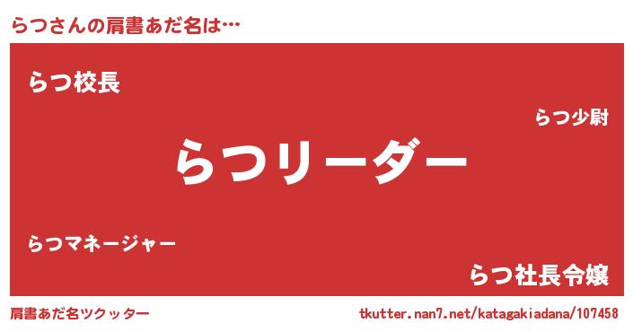 | ヘコむあだ名 | 『らつっちょ』『らつ(笑)』『豆乳』 |