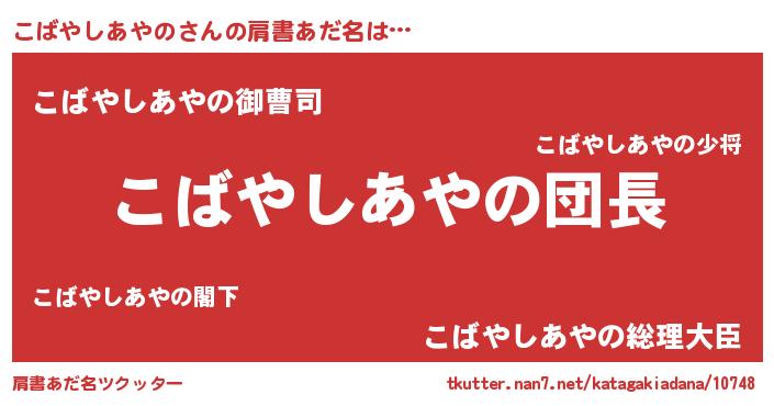 | 男性向けラノベタイトル風あだ名 | 『こばやしあやのの嫁は女の子じゃないと思った?』 |