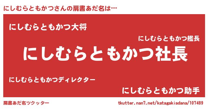 | 男性向けラノベタイトル風あだ名 | 『にしむらともかつの憂鬱』 |
