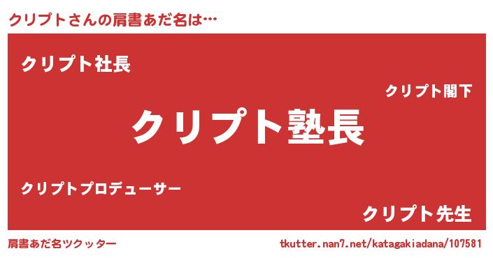 | 意味不明あだ名 | 『とにかく怪しいクリプト』 |