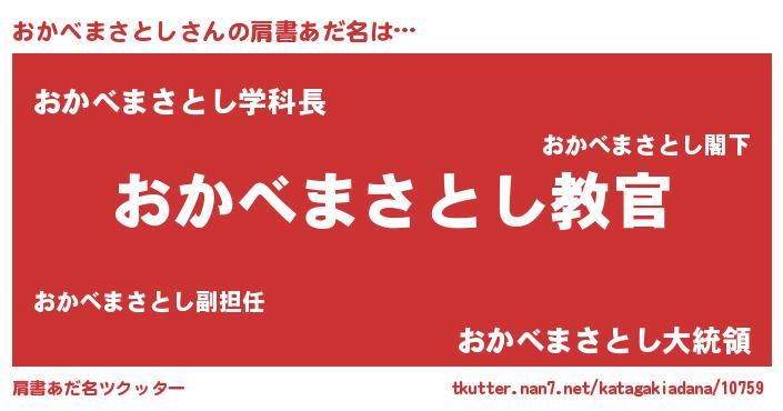 | ヒーロー風カッコイイあだ名 | 『仮面オカダー』『ネオオカベマサトシ』 |