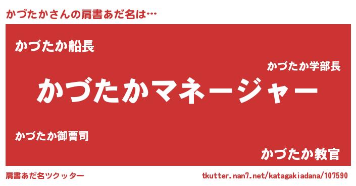 | ヒーロー風カッコイイあだ名 | 『仮面カヅダー』『天空の使者かづたか』 |