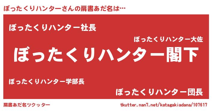 | ヒーロー風カッコイイあだ名 | 『ウルトラ戦士ボッタクリハンター』 |