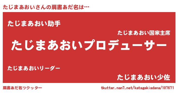 | 男性向けラノベタイトル風あだ名 | 『たじまあおいに滅ぼされるだけの簡単なお仕事です』 |