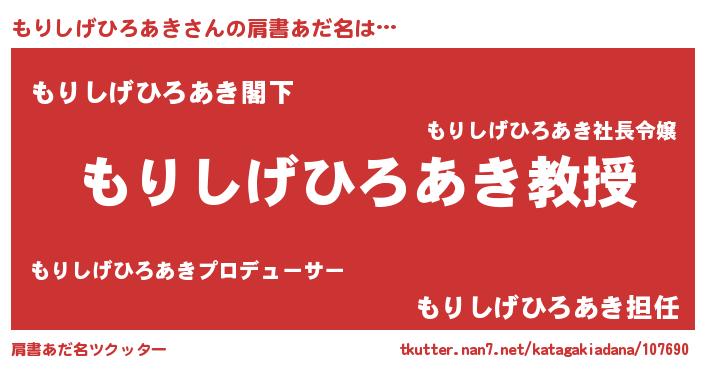 | ヘコむあだ名 | 『もりしげひろあき(小並感)』『もりふぇ~』 |