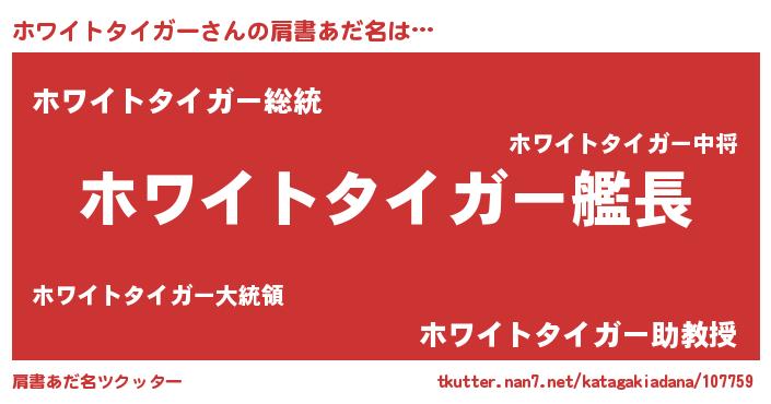 | 意味不明あだ名 | 『自称ホワイトタイガー』 |