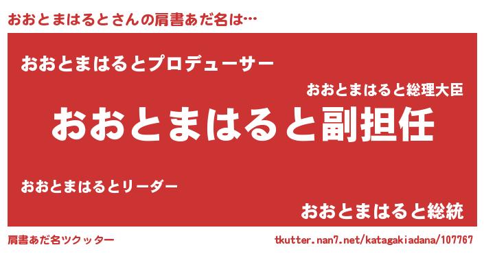 | 男性向けラノベタイトル風あだ名 | 『おおとまはるとという概念が存在しない退屈な世界 』 |