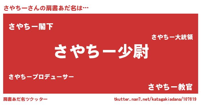 | ヒーロー風カッコイイあだ名 | 『超時空戦士サヤチー』『仮面サヤダー』 |