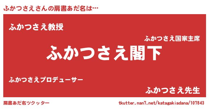 | 欧米人風あだ名 | 『ケンブリッジふかつさえ』 |