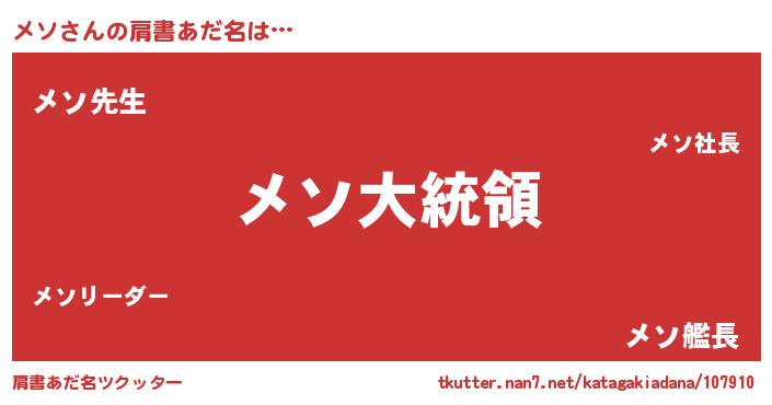 | ポケモン風あだ名 | 『メソダネ』『ゼニメソ』『ヒメソ』 |