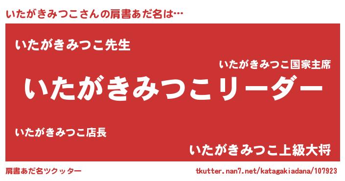 | 意味不明あだ名 | 『とにかく怪しいいたがきみつこ』 |