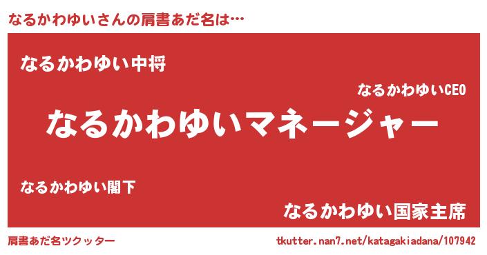 | 男性向けラノベタイトル風あだ名 | 『なるかわゆいに滅ぼされるだけの簡単なお仕事です』 |