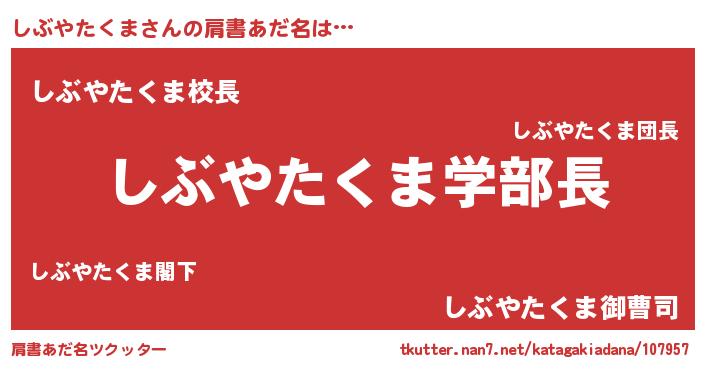| ヘコむあだ名 | 『しぶやたくま(遠い目)』『しぶにゅー』 |