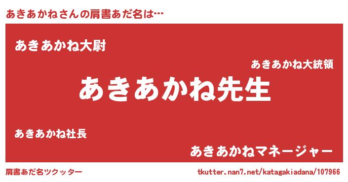 | 意味不明あだ名 | 『永久保存あきあかね』『自称あきあかね』 |