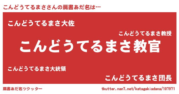 | 男性向けラノベタイトル風あだ名 | 『魔弾の王とこんどうてるまさ』 |