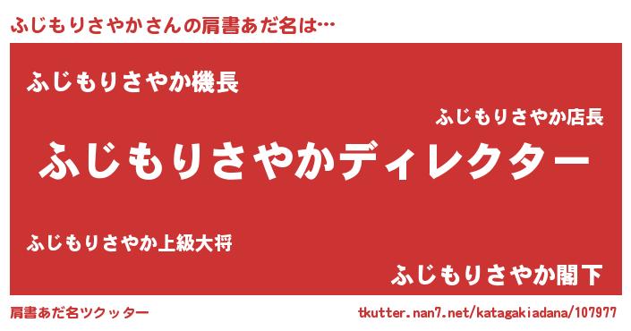 | 男性向けラノベタイトル風あだ名 | 『ふじもりさやかに滅ぼされるだけの簡単なお仕事です』 |