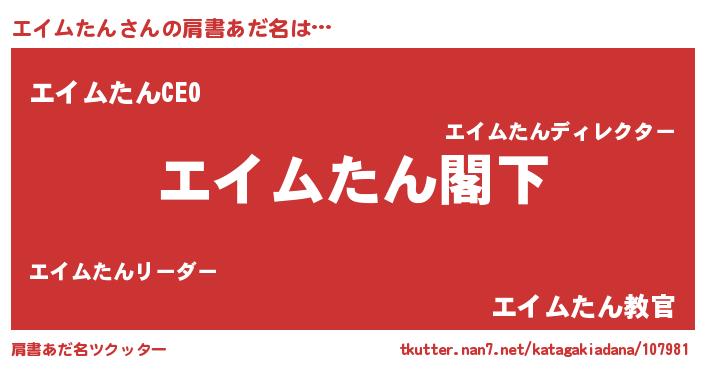 | 欧米人風あだ名 | 『ケンブリッジエイムたん』 |
