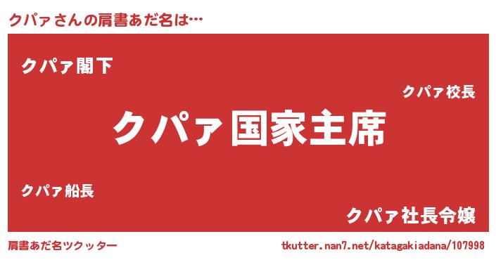 | 意味不明あだ名 | 『クパァフォーエバー』『自称クパァ』 |