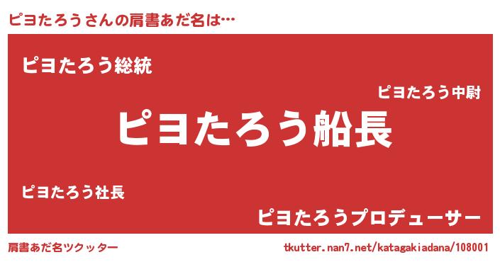 | 意味不明あだ名 | 『自称ピヨたろう』『ペロリンピヨたろう』 |