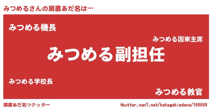 | 意味不明あだ名 | 『永久保存みつめる』『自称みつめる』 |