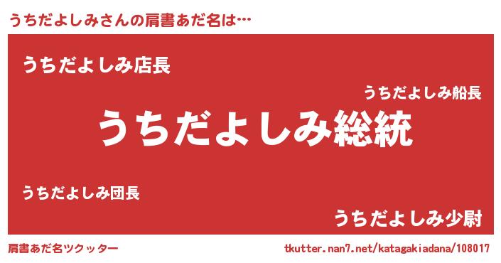| 男性向けラノベタイトル風あだ名 | 『Re:うちだよしみから始める異世界生活』 |