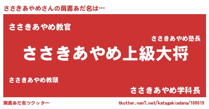 | ヘコむあだ名 | 『ささぷりん』『ささきあやめ(遠い目)』 |