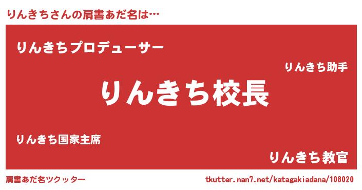 | 男性向けラノベタイトル風あだ名 | 『りんきちという概念が存在しない退屈な世界 』 |