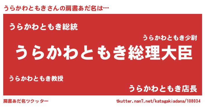 | 女子向けラノベタイトル風あだ名 | 『うらかわともきの雑貨屋さん』 |