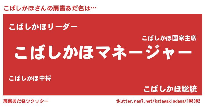 | 男性向けラノベタイトル風あだ名 | 『こばしかほに滅ぼされるだけの簡単なお仕事です』 |