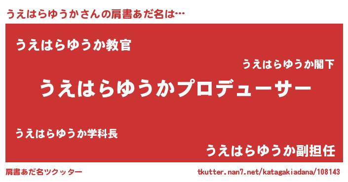 | ヘコむあだ名 | 『うえはらゆうか(苦笑)』『酢こんぶ』 |