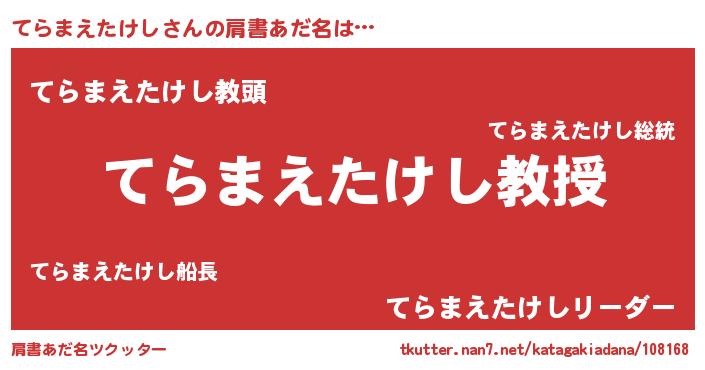 | ヘコむあだ名 | 『てらまえたけし(小並感)』『てら太郎』 |
