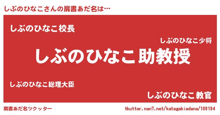 | 男性向けラノベタイトル風あだ名 | 『おまえをオタクにしてやるから、俺をしぶのひなこにしてくれ! 』 |