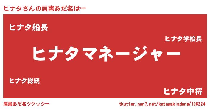 | ヘコむあだ名 | 『ヒナを』『つくし』『ヒナタ(苦笑)』 |