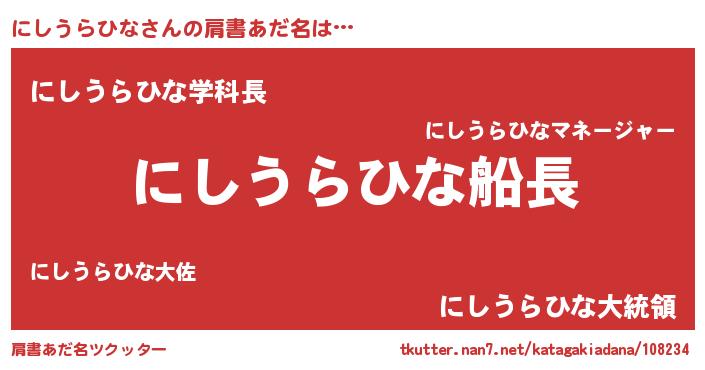 | 欧米人風あだ名 | 『にしうらひな・ステッグマイヤー』 |