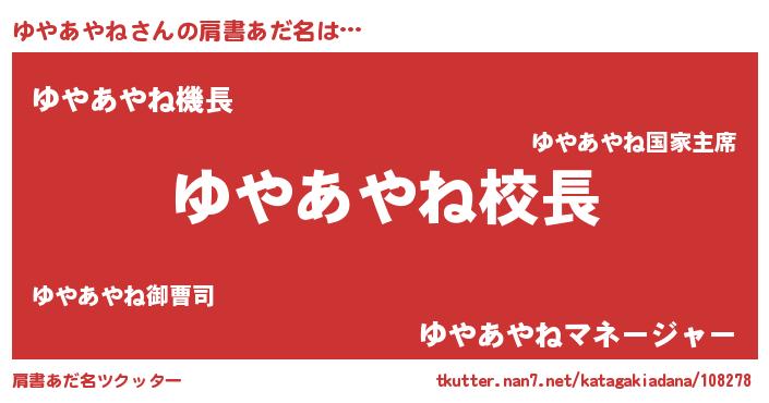 | 意味不明あだ名 | 『永久保存ゆやあやね』『自称ゆやあやね』 |