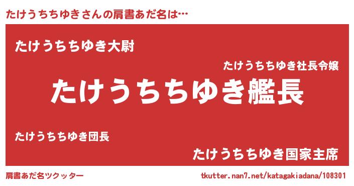| ヘコむあだ名 | 『豆乳』『たけにゅー』『たけぷりん』 |