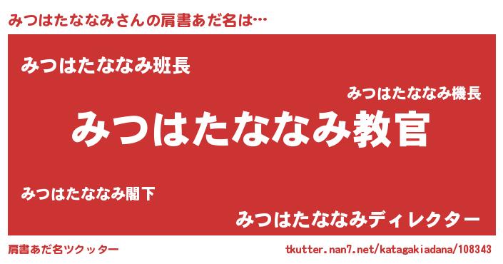 | 意味不明あだ名 | 『住所不定無職みつはたななみ(14歳)』 |