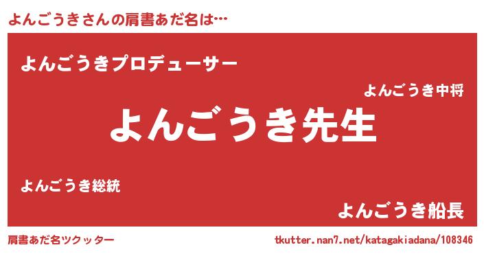 | 意味不明あだ名 | 『永久保存よんごうき』『自称よんごうき』 |