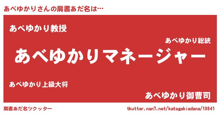 | 男性向けラノベタイトル風あだ名 | 『はたらくあべゆかりさま!』 |