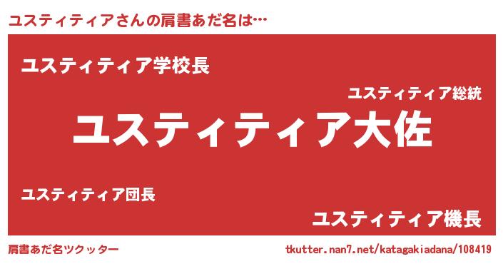 | 男性向けラノベタイトル風あだ名 | 『転生したらユスティティアだった件』 |